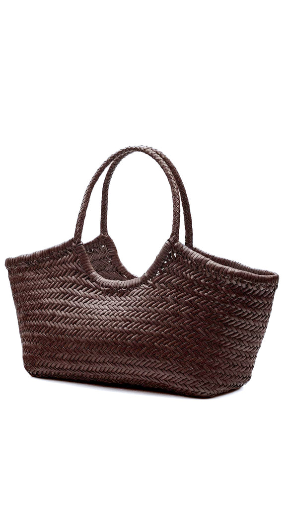 Named after the sunny Massachusetts island, the Nantucket bag is one of Dragon Diffusions most popular styles. Handwoven in a tight knit from soft buffalo calf leather and complete with braided handles, this roomy, unlined, open-top tote will be the perfect companion every day.