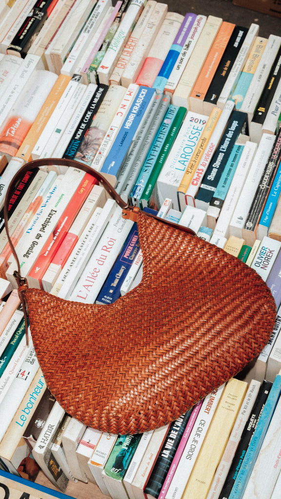 Buffalo leather. No lining. Handwoven. Width 35 cm, length 27 cm.