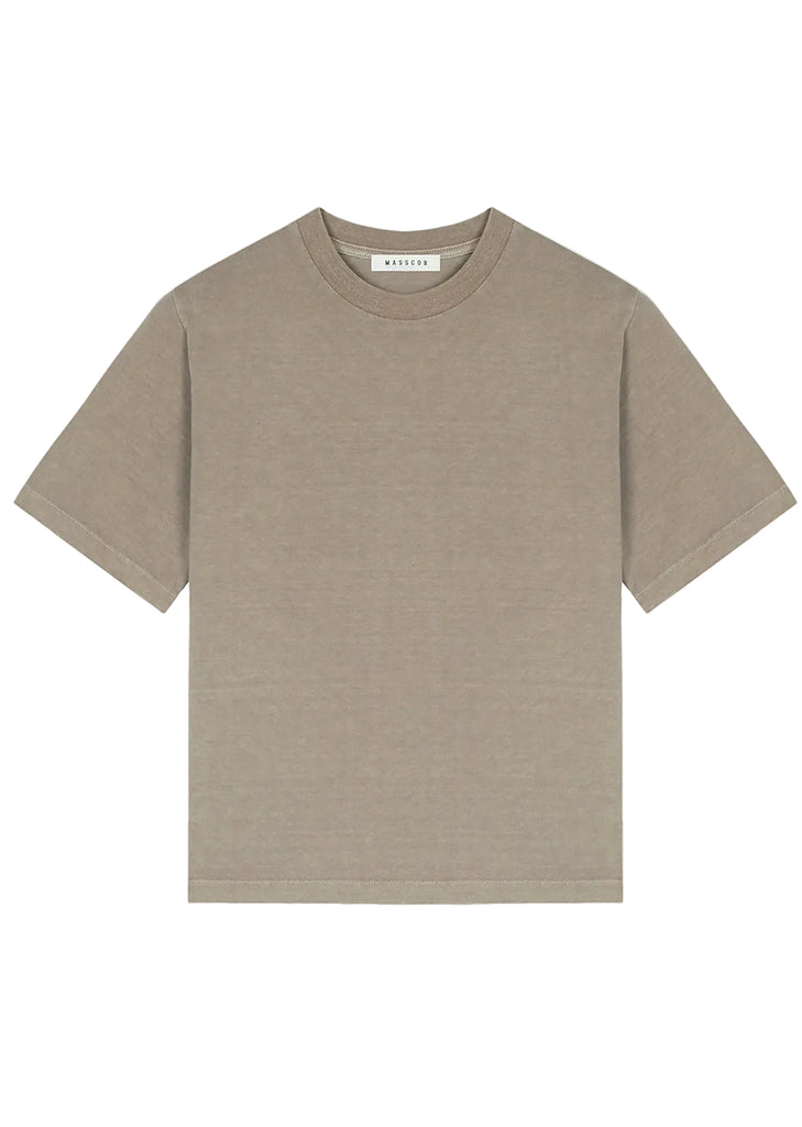 Infuse your everyday wardrobe with the effortless aesthetic of Masscob. This premium cotton T-shirt is rendered in a versatile taupe-grey hue, achieved through a specialized garment-dyeing process for a soft, lived-in feel and unique depth of color.
