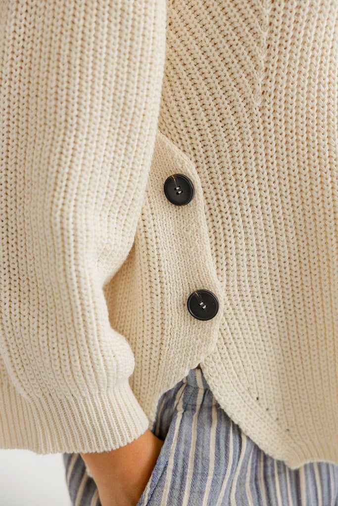 Vilma is a sophisticated rib knit sweater designed for those who appreciate thoughtful details and refined comfort. The soft, tactile fabric drapes beautifully while the relaxed silhouette with curved hem creates an effortless elegance that works across seasons. Long sleeves provide warmth and coverage, while fine vertical knit detailing at the front and back adds visual interest and dimension.