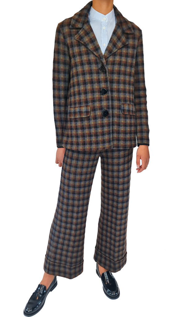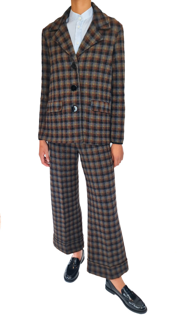 Elevate your wardrobe with this SIYU piece, a beautifully crafted wool blazer featuring a subtle checked print in harmonious shades of blue, grey, and beige. This knit blazer combines warmth and style effortlessly, offering a cozy yet polished look perfect for any occasion. Its unique color blend adds a refined touch to your outfit while the soft wool knit ensures comfortable wear throughout the day. Make a statement with this versatile piece designed to enhance your everyday elegance.