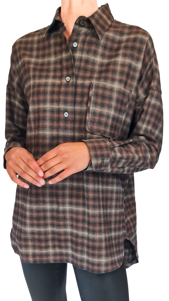 CALIBAN BROWN COTTON CHECK SHIRT