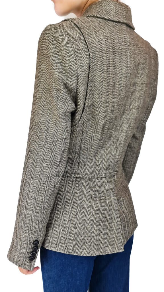 45% Wool, 40% Polyester, 15% Linen. Lining 100% cupro rayon. Dry clean. Made in Canada.